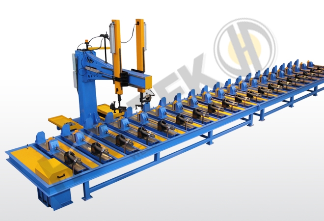 Bu makine ile standartlara uygun bütün çelik konstrüksiyon, NPH ve NPI malzemelerin kaynakları cift taraflı gazaltı veya tozaltı kaynak torcu takılarak yapılabilmektedir.Hidrolik ve pnömatik sıkma sistemi ile şaselerin uygun kaynatma pozisyonuna getirilmesi ve her türlü eğimin verilmesi mümkündür.