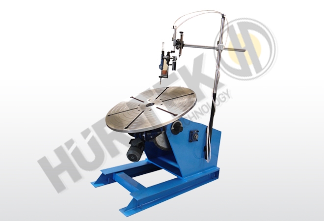 Kaynaklanacak iş parçalarının bir çoğunda ihtiyaç duyulan pozisyoner çift eksende hareket etmektedir.Eksenlerden birinde üzerine iş parçası bağlanan tabla 360 derece diğer eksende ise ters açıdan 90 derece dönmesi ve dönüşlerin hız kontrolü sayesinde konumlanması kaynak pozisyonuna getirecektir.Özel çalışmalar ve tasarımlarla asansörlü pozisyoner imalatı da yapılabilmektedir.